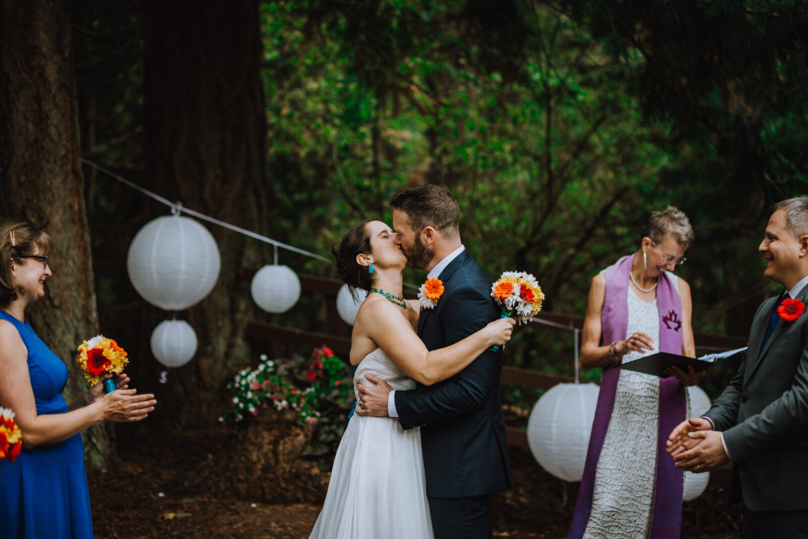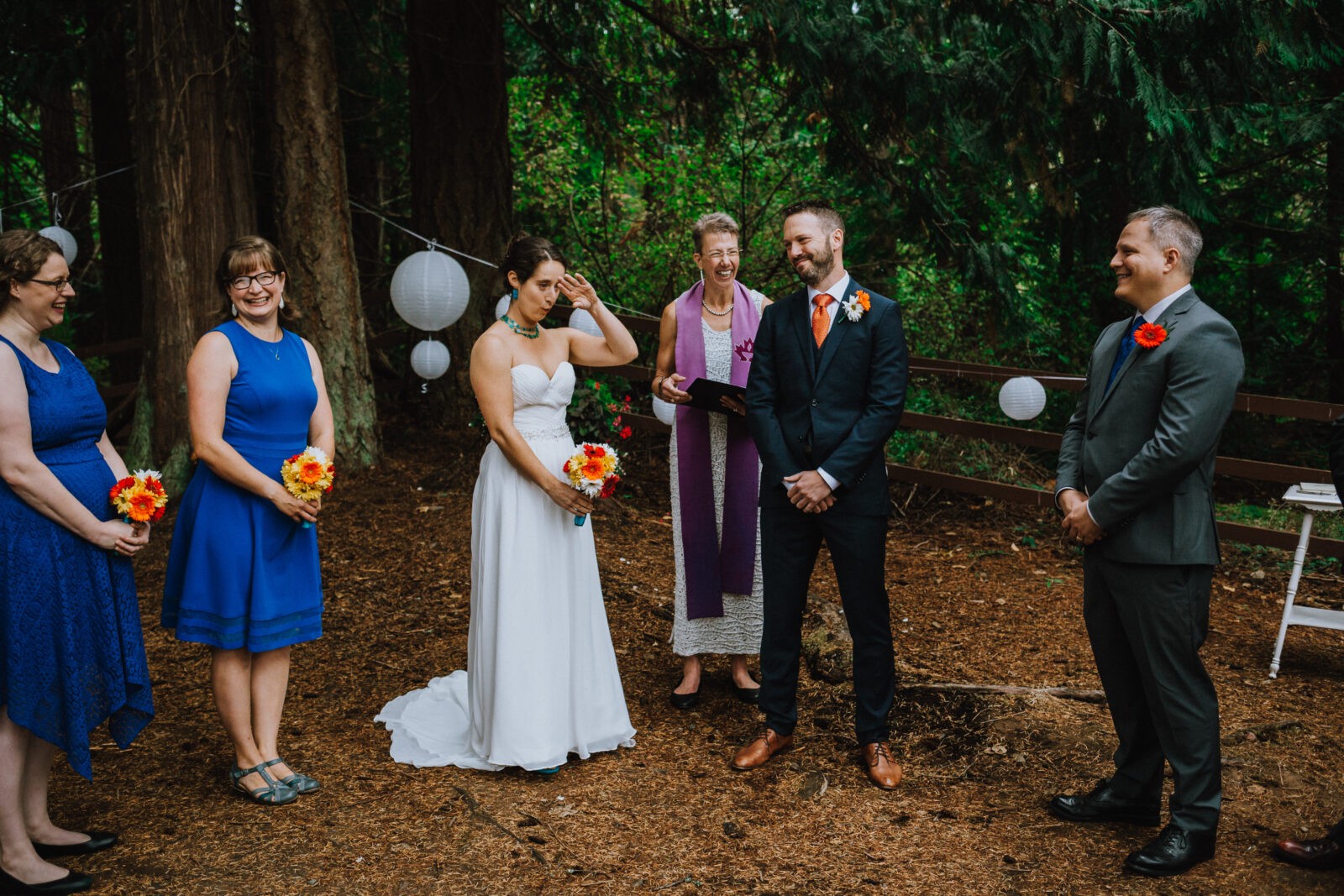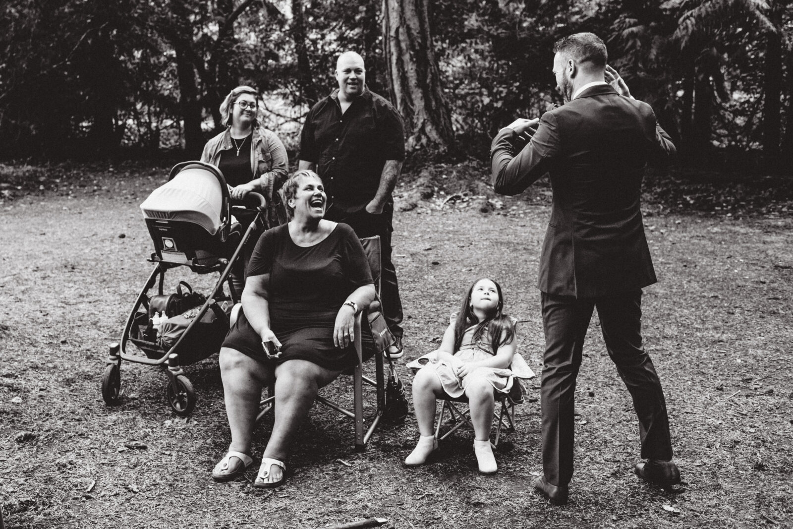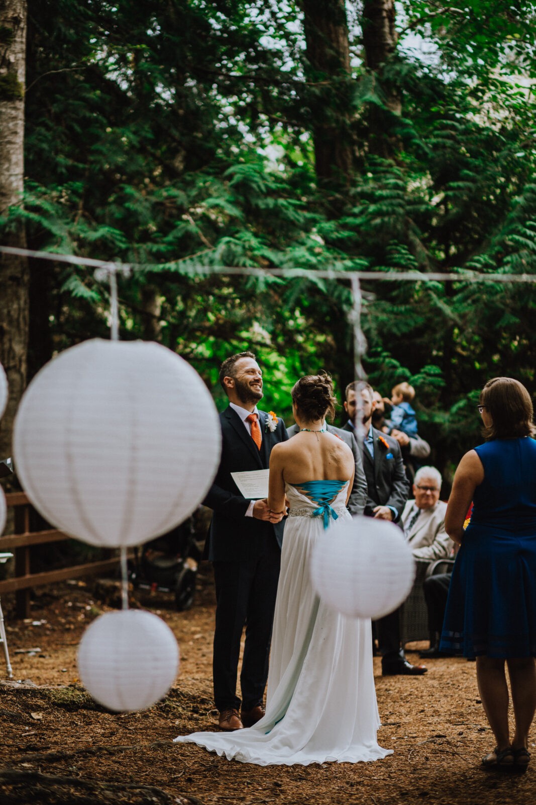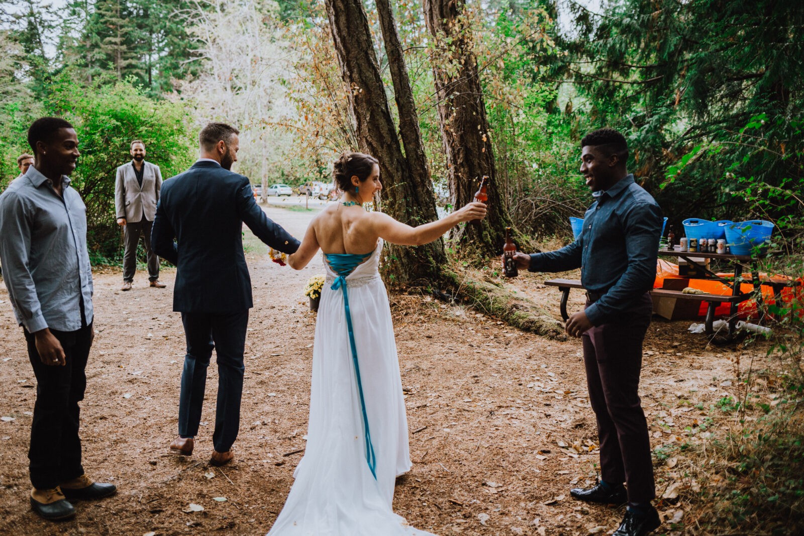 When I heard Robyn and Shawn were getting married at Rathtrevor campground in Parksville and were planning on handing out beer to everyone at the their recessional I knew I had to photograph their wedding. Obviously. These two are so unequivocally themselves and their genuine, laid back personalities were apparent in all the little details of their day. Robyn literally skipped through the forest into her wedding ceremony and Shawn couldn’t take his eyes off of her. Their vows were so funny, meaningful and unique and their ceremony truly was the perfect mixture of laughs and tears. The cutest little ring bearer delivered their rings on a plastic dinosaur tail which had everyone smiling. Obviously my favorite part was when every guest was handed a beer on the way out of the wedding – something I’ve truly never seen before but hope to see more of!
