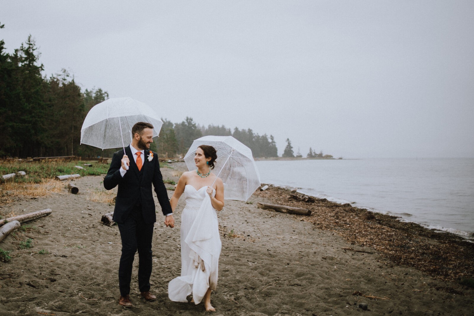 Immediately after the ceremony the rain hit pretty hard but we stuck it out and headed to Rathtrevor beach for some epic photos. I didn’t have to ask Robyn twice to run barefoot in the rain and mud because she was more than happy to oblige. I swear to god you guys!! When my clients are carefree and open to doing whatever it’s truly my favorite thing and it opens a space to create the most magical photos together. Some of my favorite photos I’ve ever taken came out of this wedding and I have these two and their SHEER AWESOMENESS to thank for that.